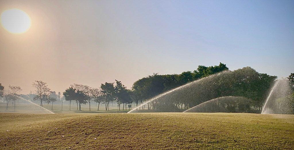 Under the golden rays of the sun, The greens are drenched in dew, A tranquil scene, a sight to behold, A perfect morning for Golf anew.