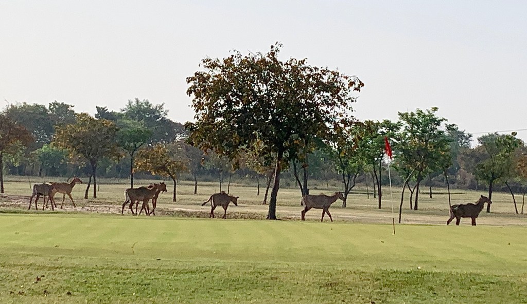 Today while playing Golf at ATS Golf Course Derabassi near Chandigarh India, I came across a herd of Blue Bulls walking on a Golf green. I immediately took out my IPhone and took photographs of these majestic animals. Thereafter I did a bit of digging around about this animal on the web and found interesting facts about them.