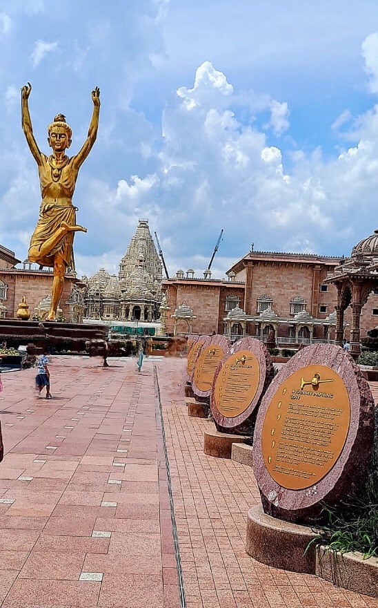 The Akshardham temple is dedicated to Bhagwan Swaminarayan, a revered Hindu spiritual leader. It serves as a place for devotion, meditation, and community gatherings. The temple complex encompasses various prayer halls, exhibition spaces, assembly halls, and beautiful gardens.