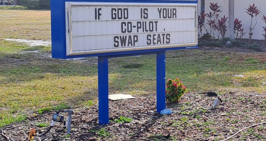 In a world filled with uncertainties and challenges, the notion of surrendering control to a higher power can be both daunting and liberating. The sign posted near a church, stating “If God is your copilot, swap seats,” encapsulates this sentiment with profound simplicity. It serves as a poignant reminder to relinquish the illusion of control and place our trust in something greater than ourselves.